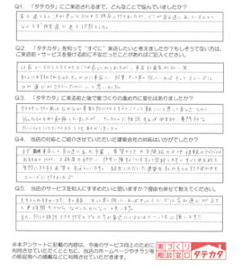 「家づくり相談窓口タテカタ」を通じてハウスメーカーや工務店をご紹介させていただいたお客様アンケートをご覧ください。